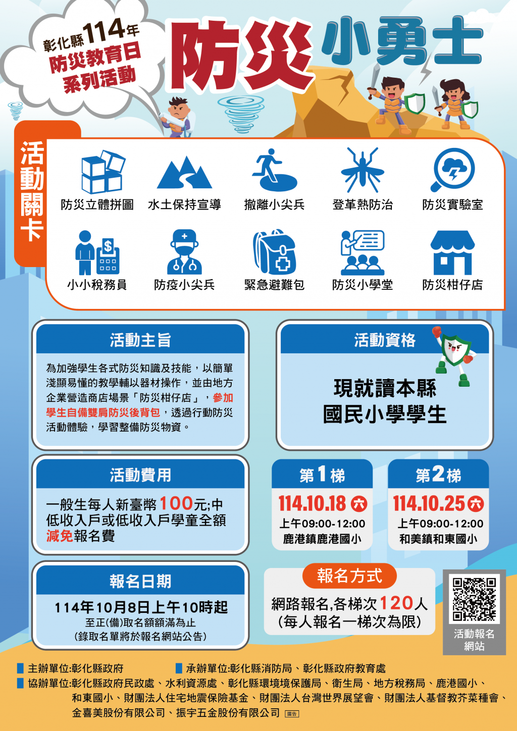 (三)報名資訊請至「彰化縣防災資訊網-防災資訊-防災教育日系列活動專區(網址:https://changhuadp.com/)」查詢。