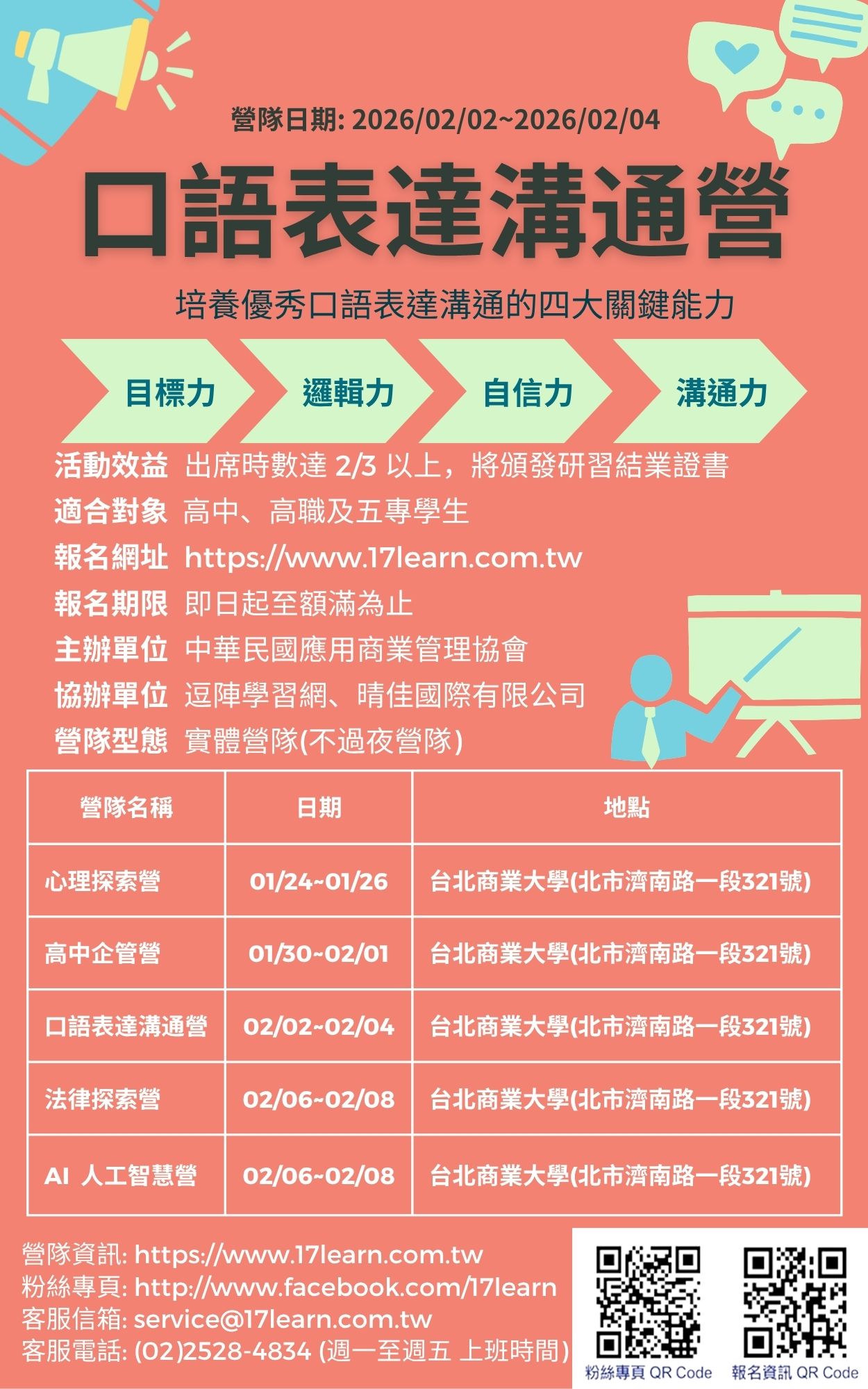 2026冬令營-高中企管營(不過夜營隊),招生中!!檢附活動簡章海報,歡迎有志於往【管理學群】、【財經學群】相關科系探索體驗的同學踴躍報名參加。