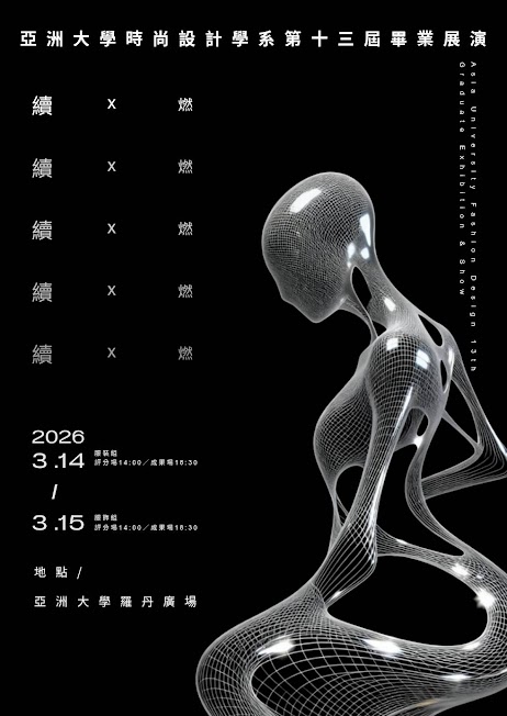 亞大時尚設計學系謹訂於115年3月14日(六)與3月15日(日) 假亞洲大學羅丹廣場舉辦「亞洲大學時尚設計學系第十三屆畢業展演」,是一近距離參觀時尚秀展的稀有機會!