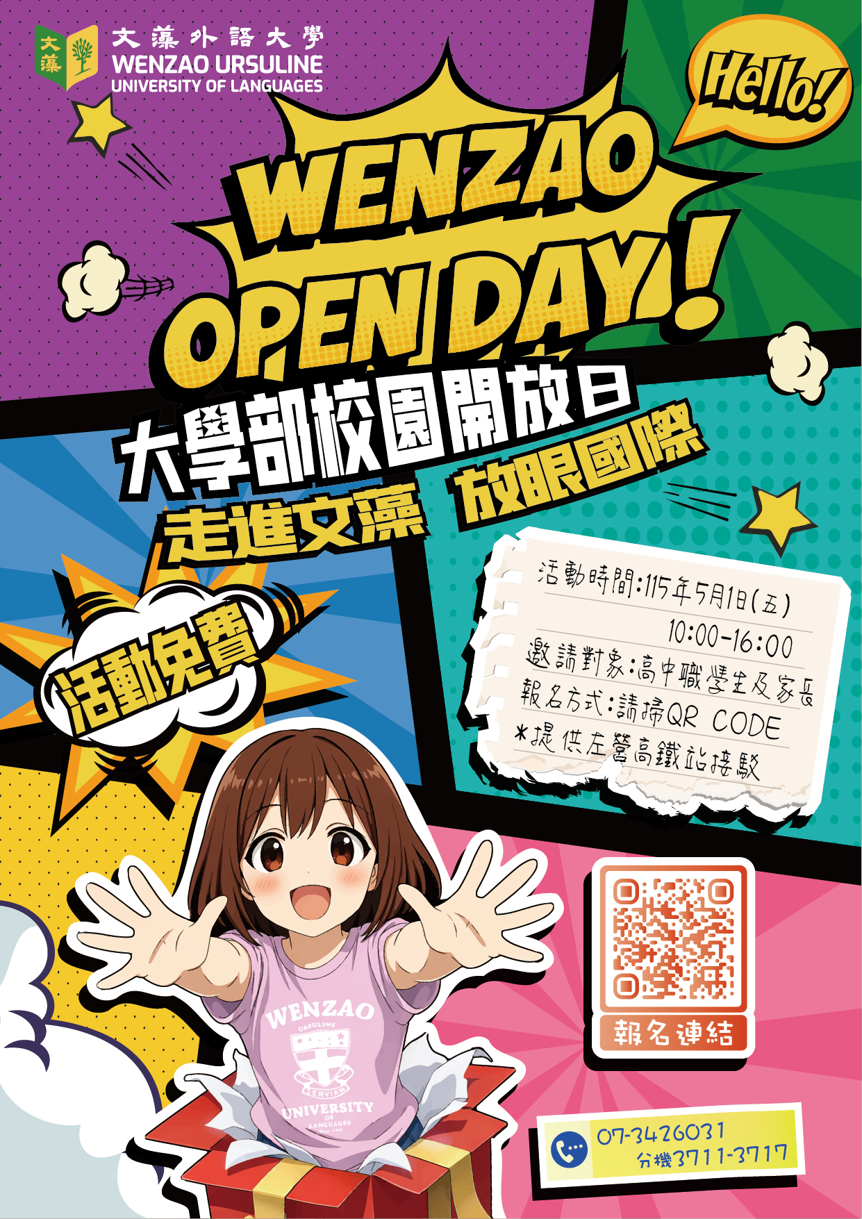 詳閱文藻外語大學辦理115年大學部校園開放日活動海報