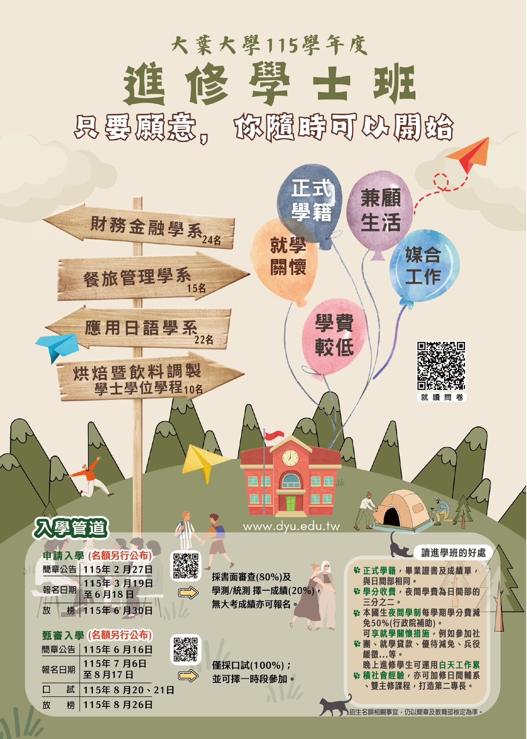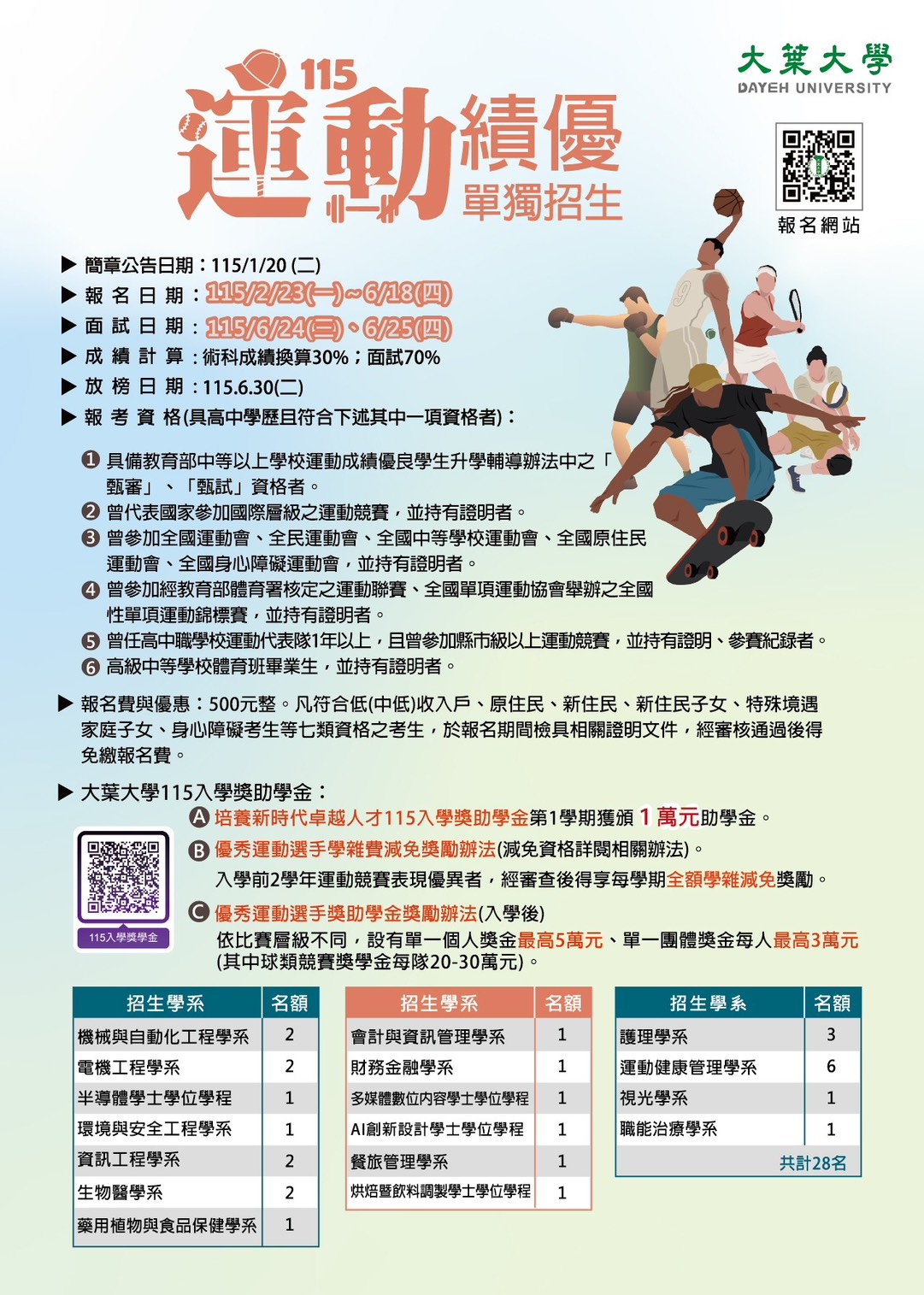 大葉大學進修學士班、運動績優招生資訊請詳閱附件。