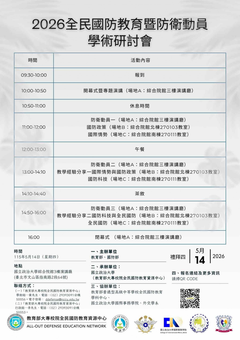 四、參與對象:專家學者、學校教師、軍訓教官、行政院動員會報各分類計畫機關、研究生及對研討議題有興趣者,實體及線上各以200人為限。