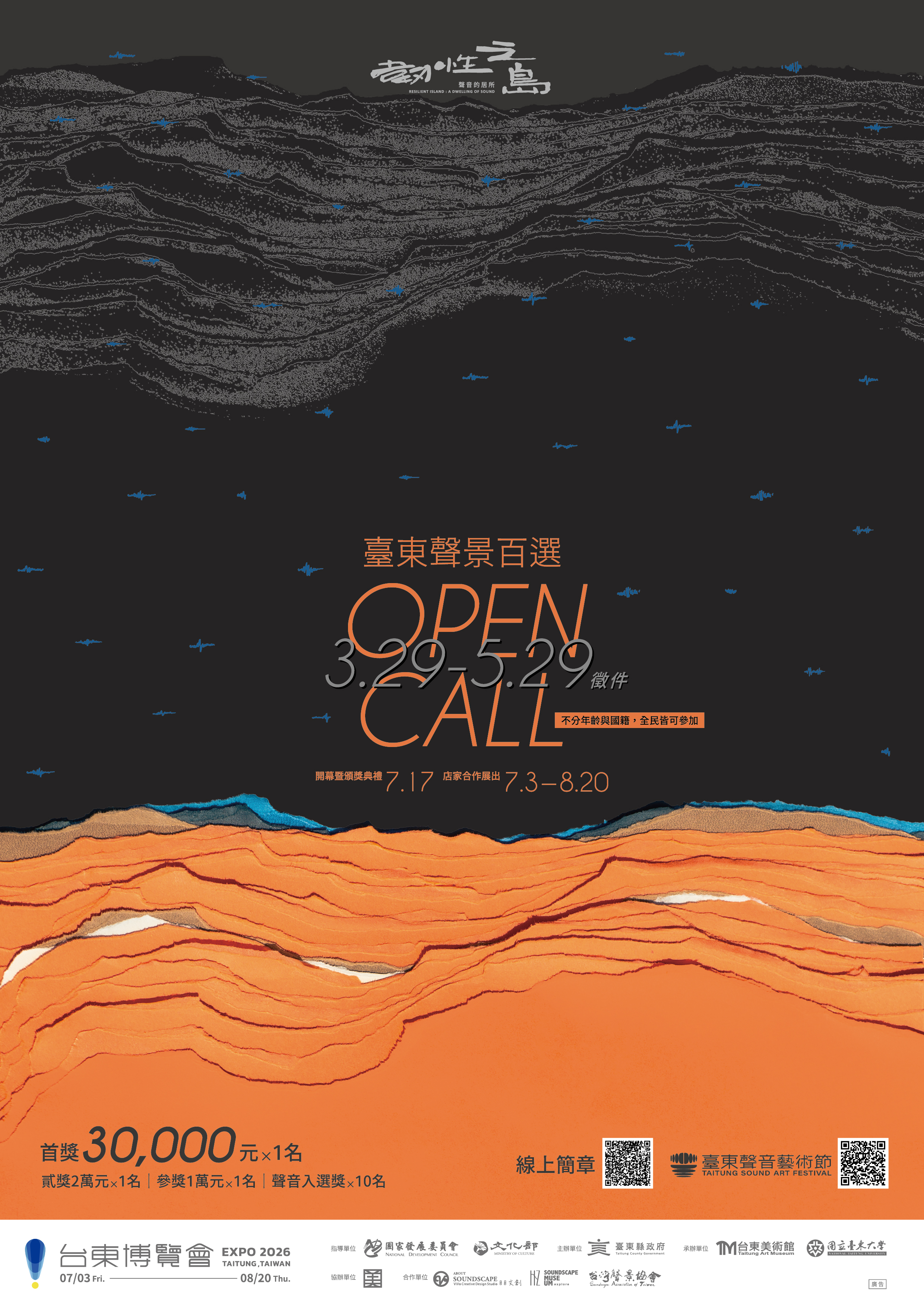 | 一、 | 為推展與建構臺東聲音無形文化,本中心舉辦 「2026臺東聲音藝術節-臺東聲景百選徵件活動」,邀請各相關領域之專家學者與先進、各科系(所)之教師、研究生踴躍參與音檔投稿,共襄盛舉。 |